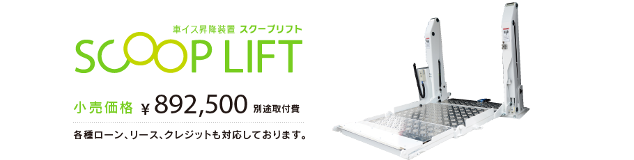 今お使いになっている車を簡単に福祉車両に変身!それが、ユーズドカーを使った車イス昇降装置「スクープリフト」です。取り付けも取り外しもラクラクおまかせで、人にも車にも優しい設計です。あなたによりよい生活を。